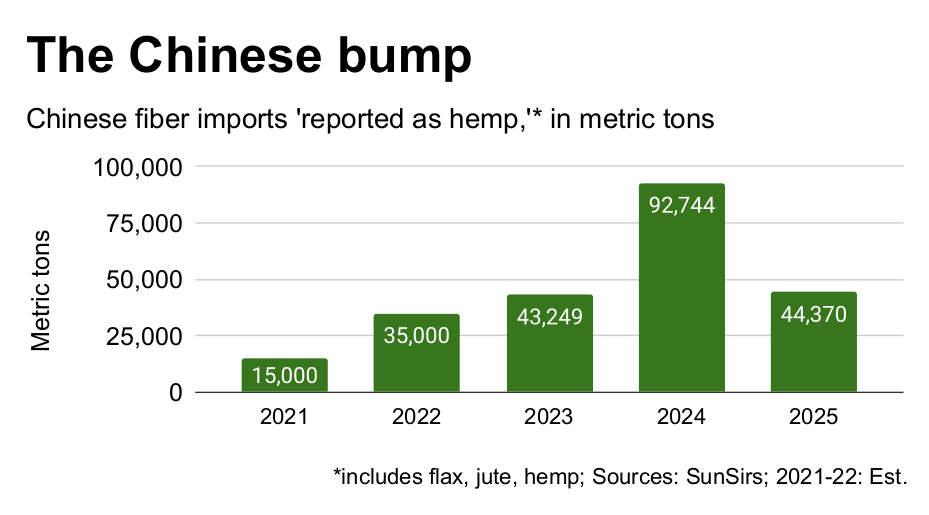 Replace and clarification: This story has been up to date to mirror terminology utilized in Chinese language commodity reporting, the place fibers labeled as “hemp” could also be labeled inside broader bast-fiber classes. This resulted in beforehand reported figures that possible overstated hemp imports particularly.