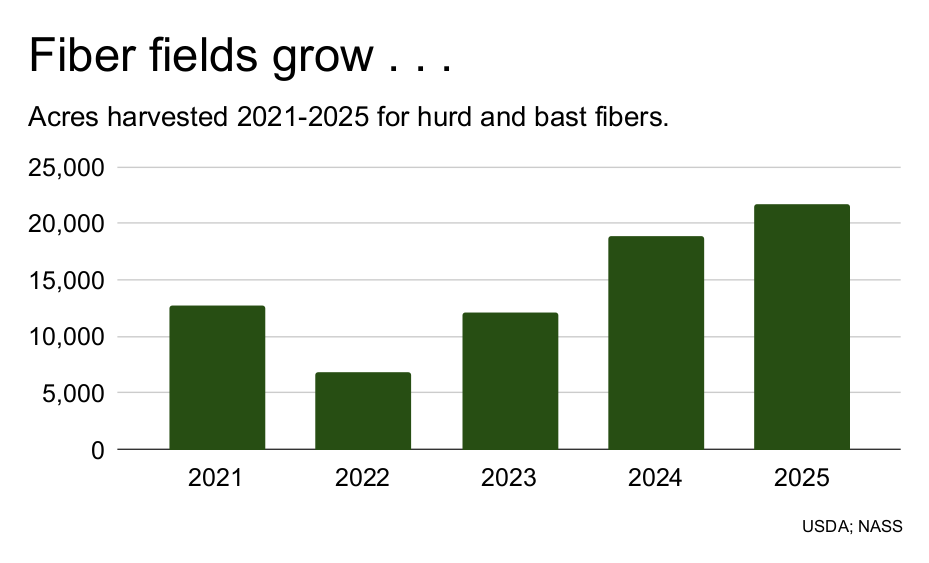 The report, launched yesterday by USDA’s Nationwide Agricultural Statistics Service (NASS), confirmed that acreage of stalks grown for hemp hurd and bast fiber for textiles expanded once more in 2025.